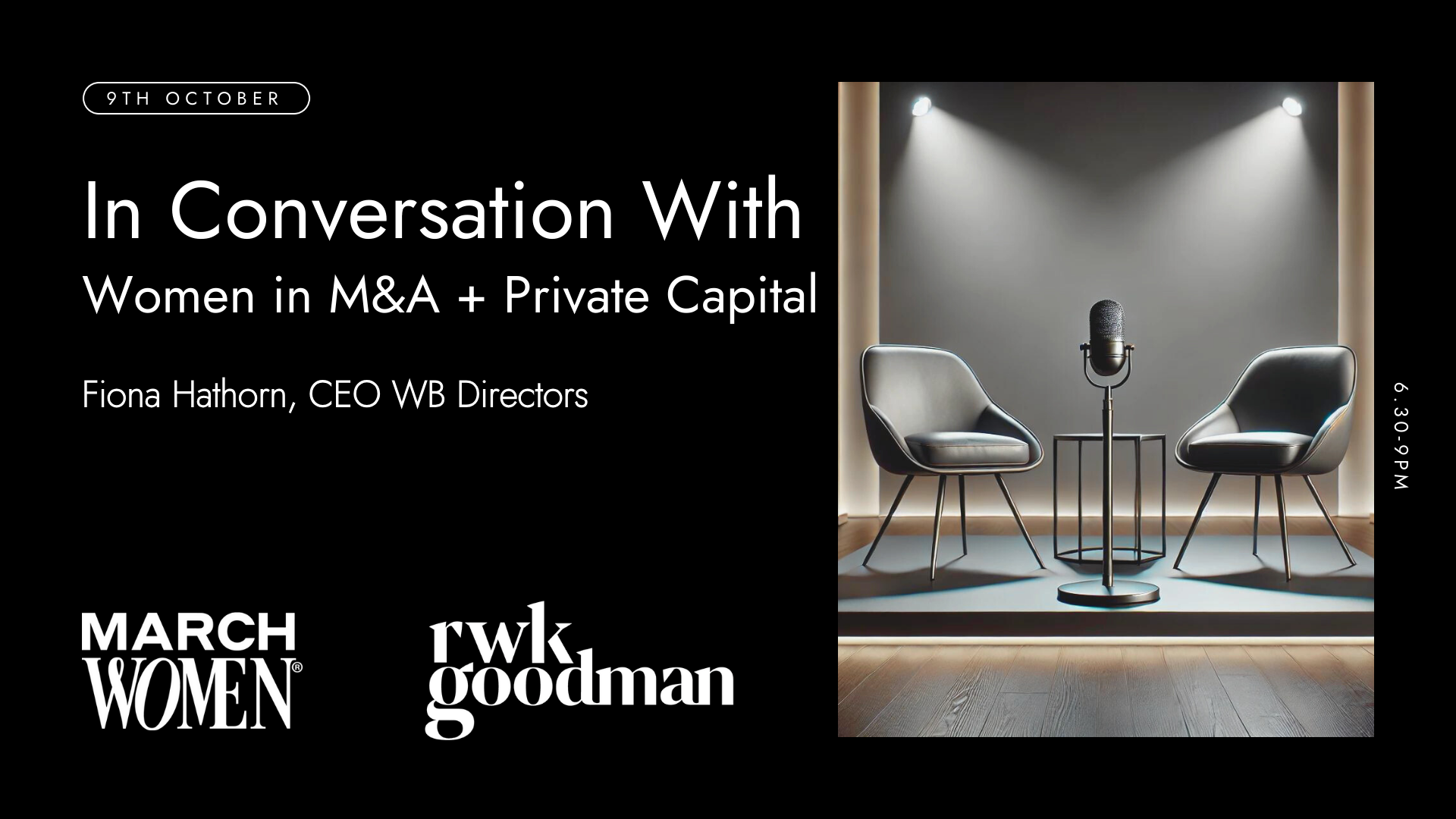 Following the successful discussion on Non-Executive Director roles at our April breakfast social, we're delighted that our corporate member RWK Goodman is co-hosting an "In Conversation With" evening for us with Fiona Hathorn.